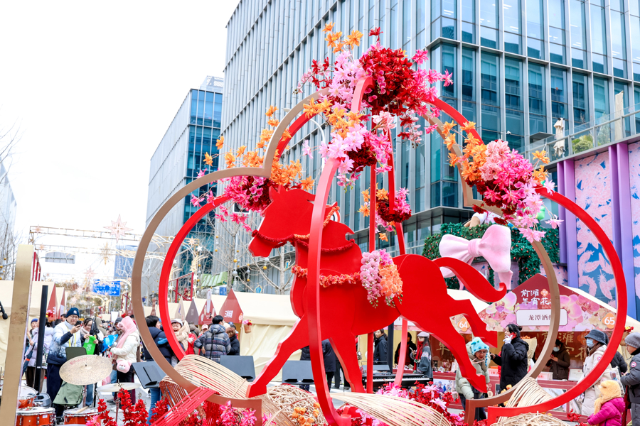各界人士来到此行的最后一站前滩公园巷,这里正举办前滩年宵花集。市集以花植为脉络,以“‘花’式迎新”为理念,融合都市生活与中式美学,营造出满满的热闹仪式感。年宵花艺、烟火风味、手作好物、非遗技艺等120多个展位,令人目不暇接。现场还设有打卡点与互动区域以及形式多样的现场迎新表演,为市民提供集运动、休闲、文化与消费于一体的丰富体验。7家前滩品牌酒店展开糕点技艺对决,奉上匠心甜点盛宴,更有前滩公园巷、晶耀前滩等商户的元旦限时福利等你领。